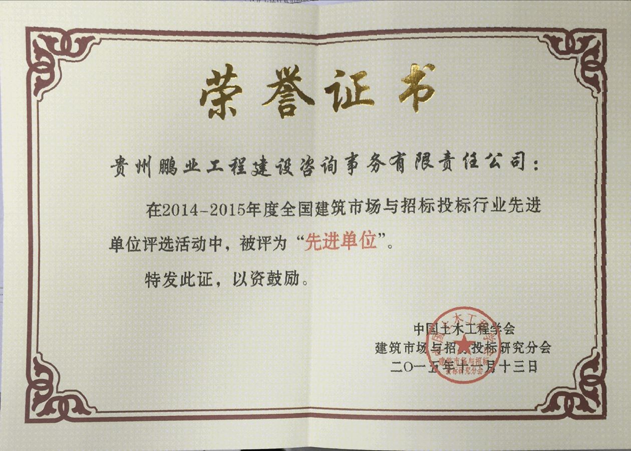 獲得2014-2015年度全國建筑市場(chǎng)與招標(biāo)投標(biāo)