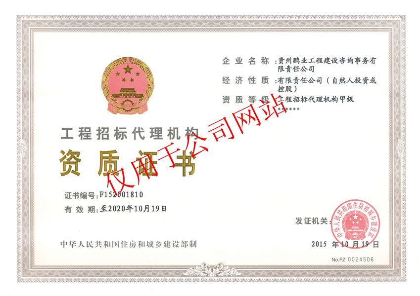 工程招標(biāo)代理甲級(jí)資質(zhì)證書